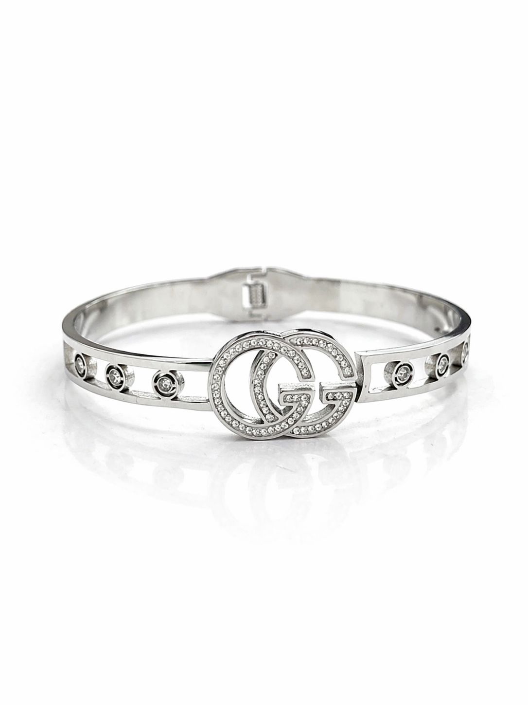 Bracelete GG Prata com Strass em Aço Inoxidável N02 - NÃO HÁ TROCA