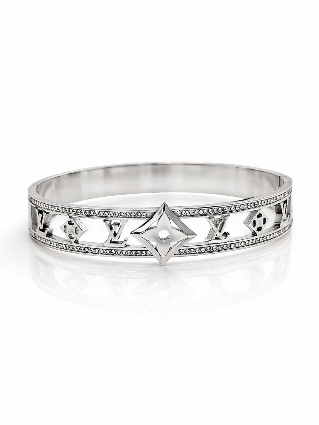 Bracelete Prata Vazado com Strass em Aço Inoxidável N05 - NÃO HÁ TROCA