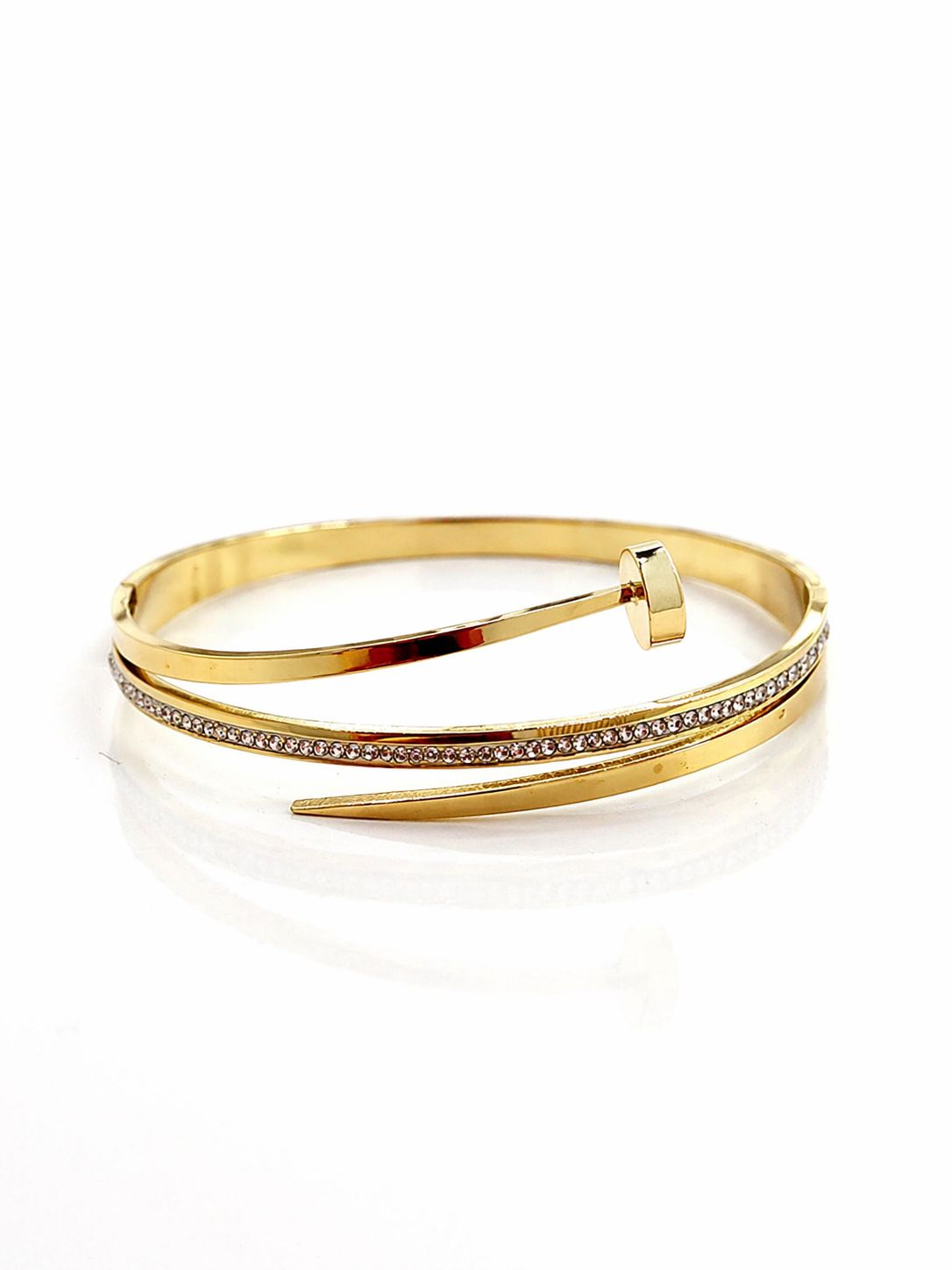 Bracelete Prego Dourado com Strass em Aço Inoxidável N01 - NÃO HÁ TROCA