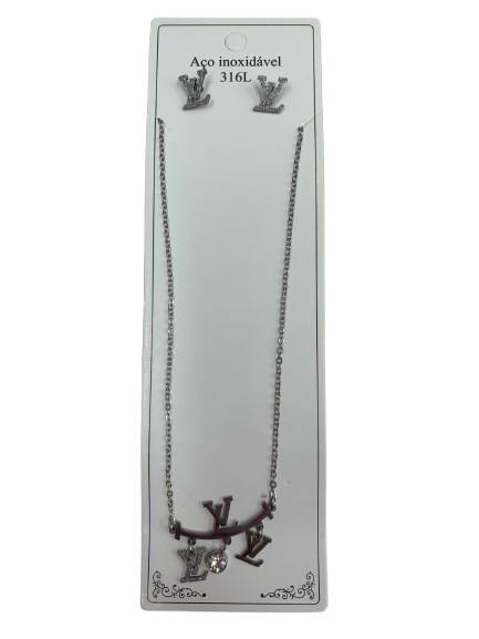 Colar + Brinco LV - Aço Inoxidável