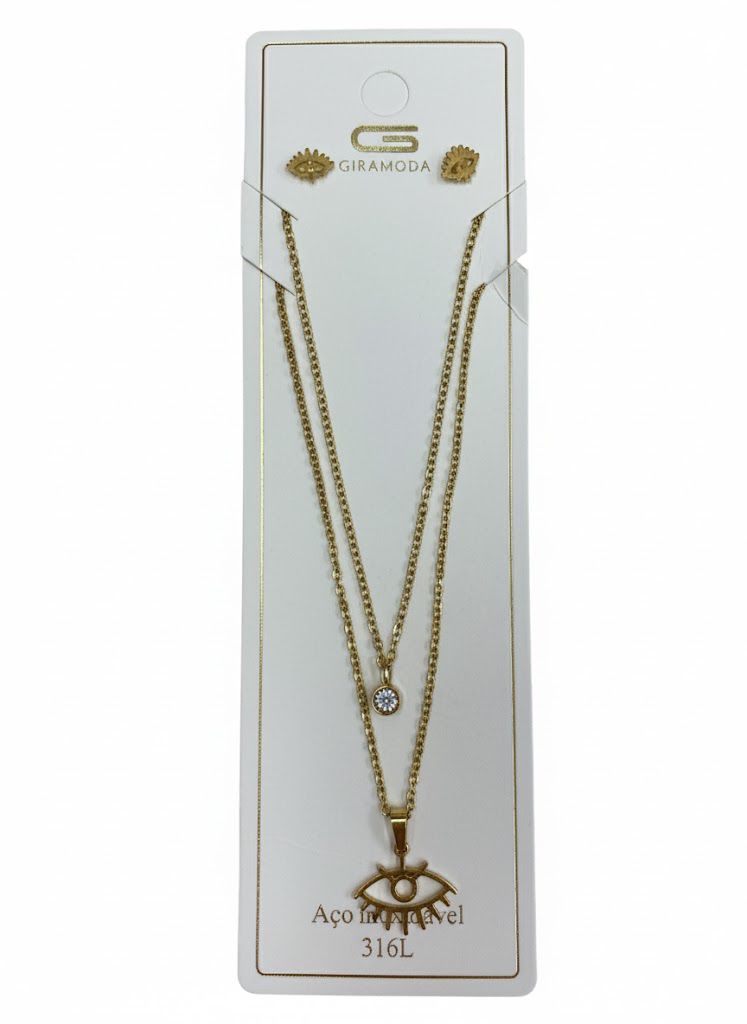 Colar + Brinco Olho Grego N237 Aço Inoxidável - NÃO HÁ TROCA