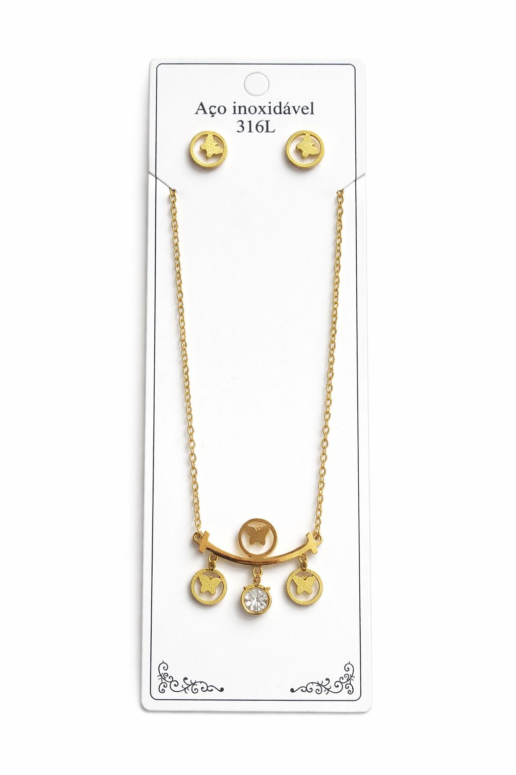 Conjunto Colar e Brinco Curva Borboleta em Aço Inoxidável - NÃO HÁ TROCA