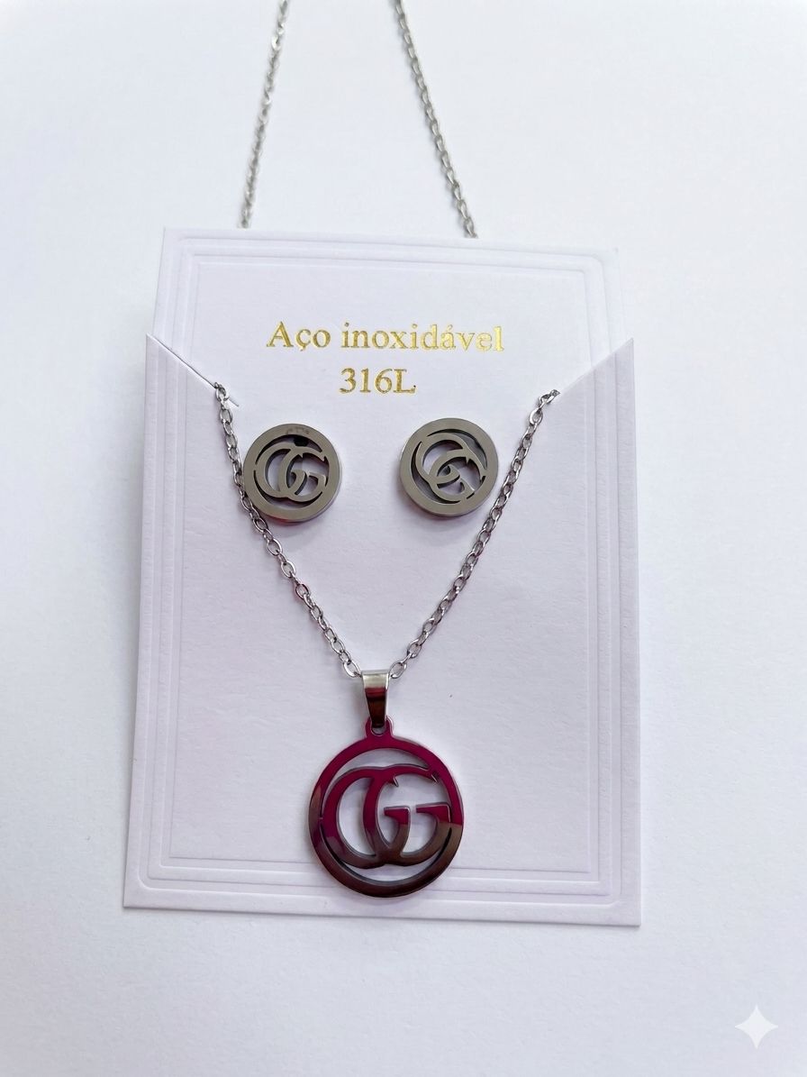 Conjunto Colar e Brinco GG liso em Aço Inoxidável N31 - NÃO HÁ TROCA