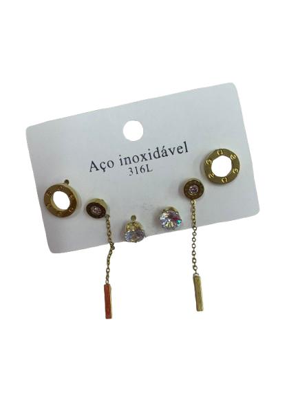 Kit 3 Pares de Brincos 02 - Aço Inoxidável