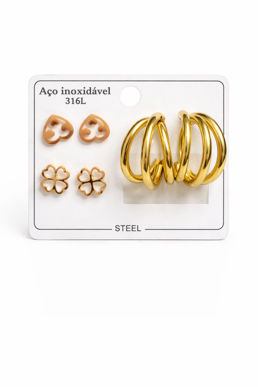 Kit C/3 Brincos com Pingente de Trevo/Coração N13 - NÃO HÁ TROCA
