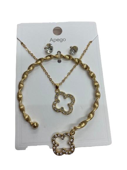 Kit Colar, Brinco e Bracelete Trevo Dourado