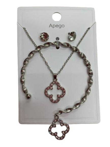 Kit Colar, Brinco e Bracelete Trevo Prata