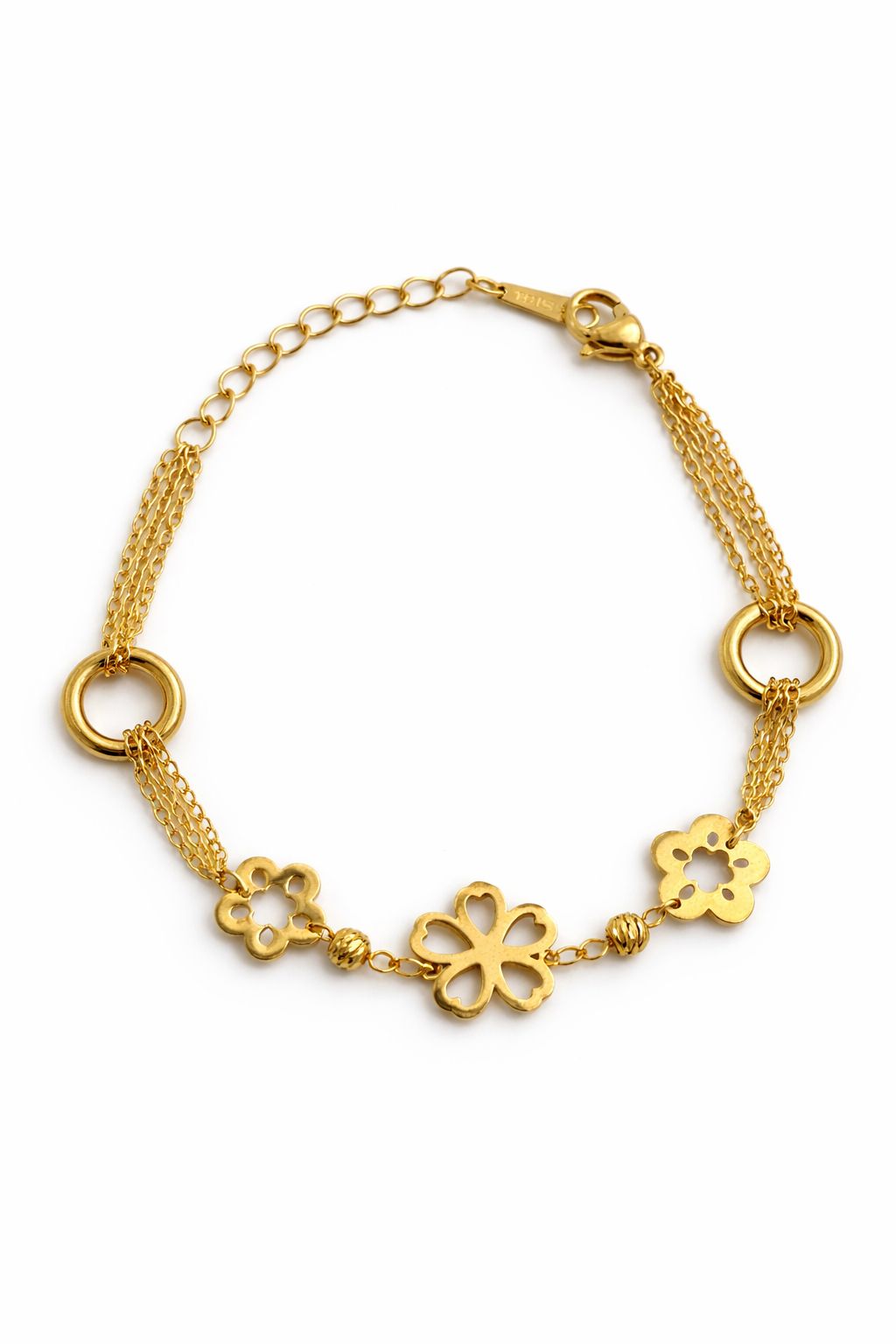 Pulseira Com Pingentes De Flor Vazado em Aço Inoxidável - NÃO HÁ TROCA