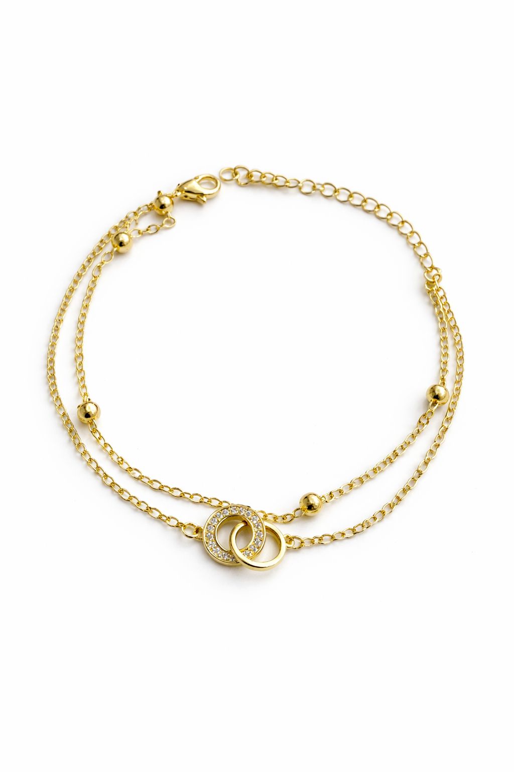 Pulseira Dupla com Anéis Entrelaçados - NÃO HÁ TROCA