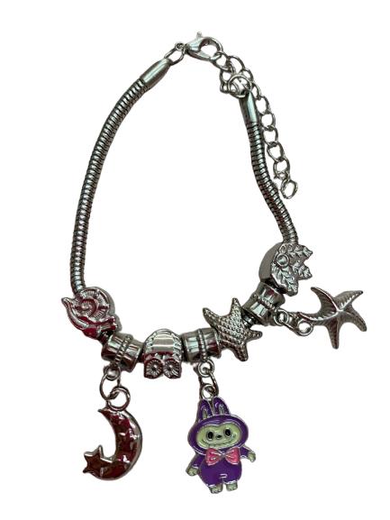 Pulseira Inspiração Pandora Prata Laubu Roxo - NÃO HÁ TROCA