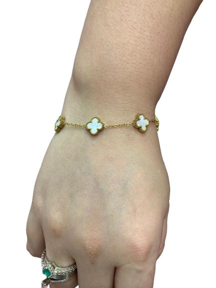 Pulseira Trevo Branca Dourada - Aço Inoxidável